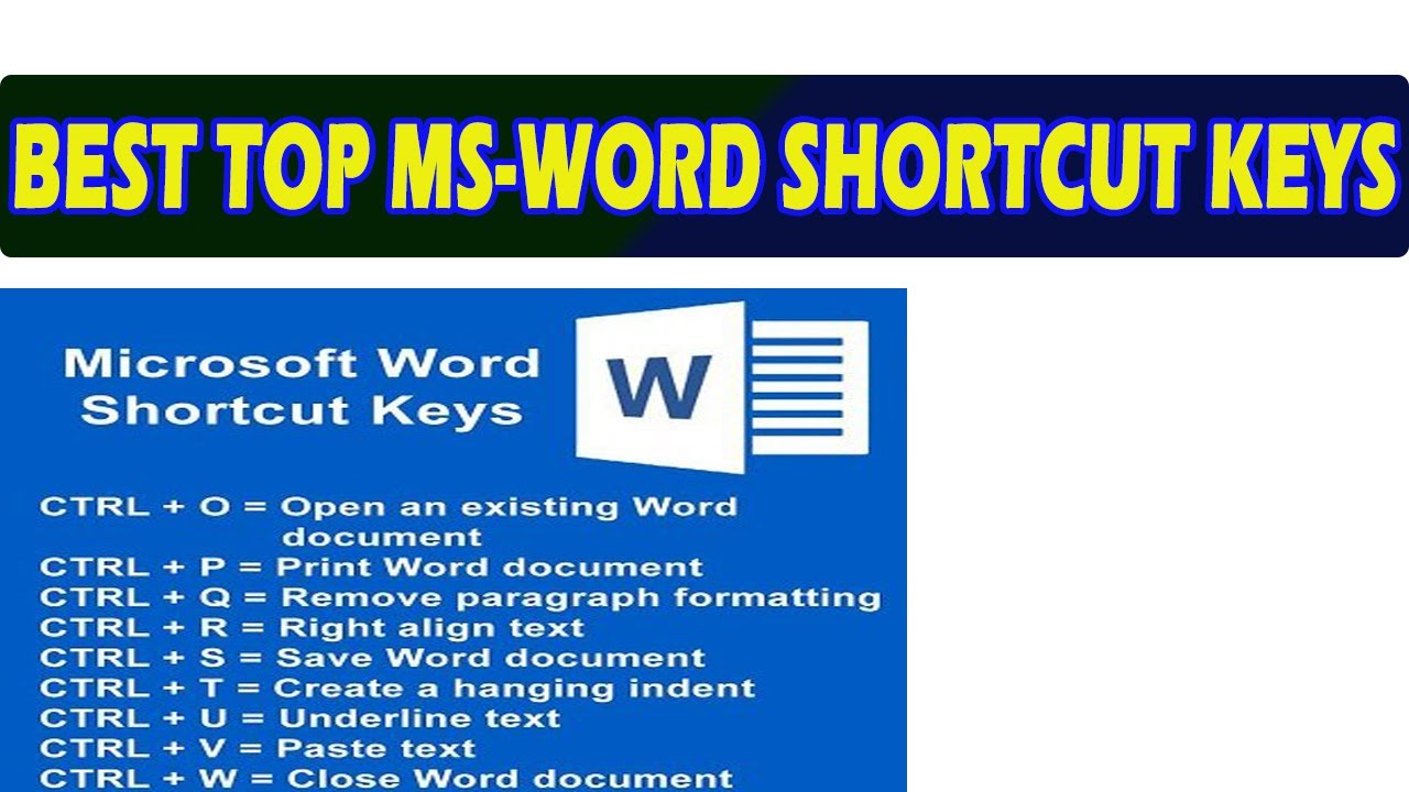 Best Top Ms Word Shortcut Keys